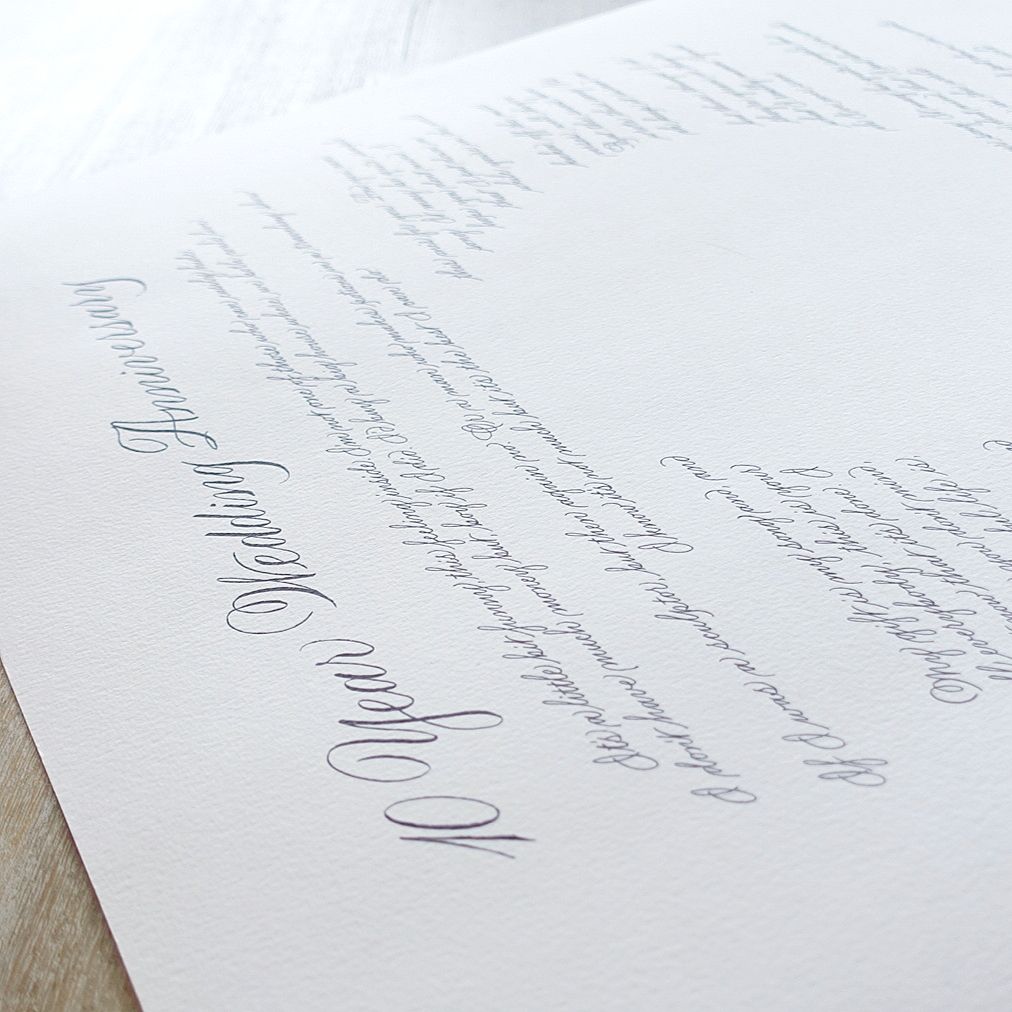 "My husband and I absolutely loved our custom calligraphy wedding vows as our first year anniversary gift! Viv was incredibly easy to deal with and it was obvious that she put a lot of care and detail into her work!